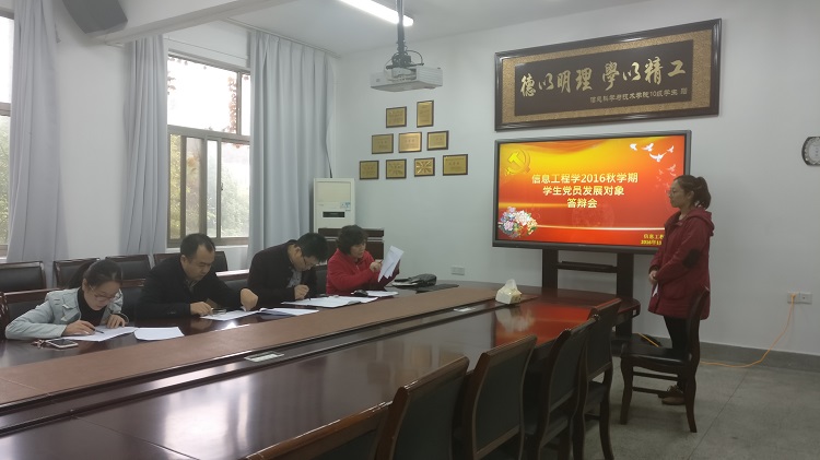 11月18日,公司于5号楼会议室举行2016秋学期员工发展对象答辩大会,党总支书记朱佳芳、党支部委员徐贵伍、第四支部书记卢东祥、第五支部书记施桂红出席答辩会,13、14级共14名员工发展对象参与答辩会。