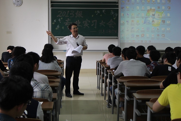 时间飞逝,转眼13级的学子就要步入大四,不久将要踏入实习单位,5月31日下午1:50,公司于B101召开13级专业实习动员大会,为13级同学们传授实习经验并提出实习注意事项。经理于建江,公司老师陈劲新、陆伟;辅导员施桂红以及部分13级班主任出席会议,全体13级员工参加会议。