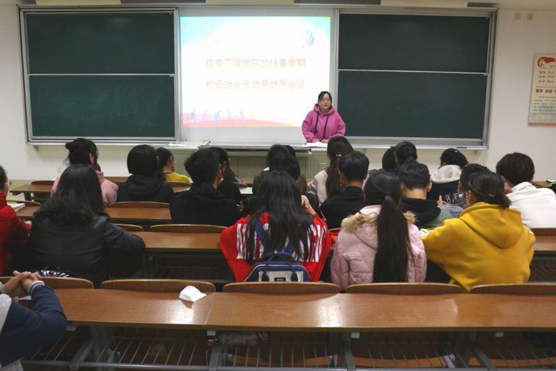 4月13日,云顶国际yd222线路检测中心在主楼B103召开了春学期校运动会动员大会,学工办主任施桂红主持了此次会议,团总支副书记卞雅妮,辅导员毛阿璇,部分工作人员和全体运动员参加了此次会议。