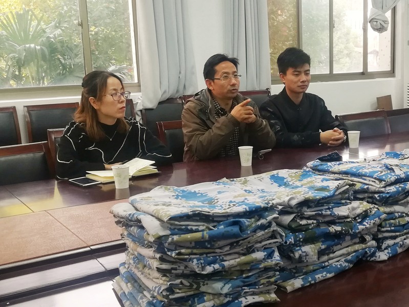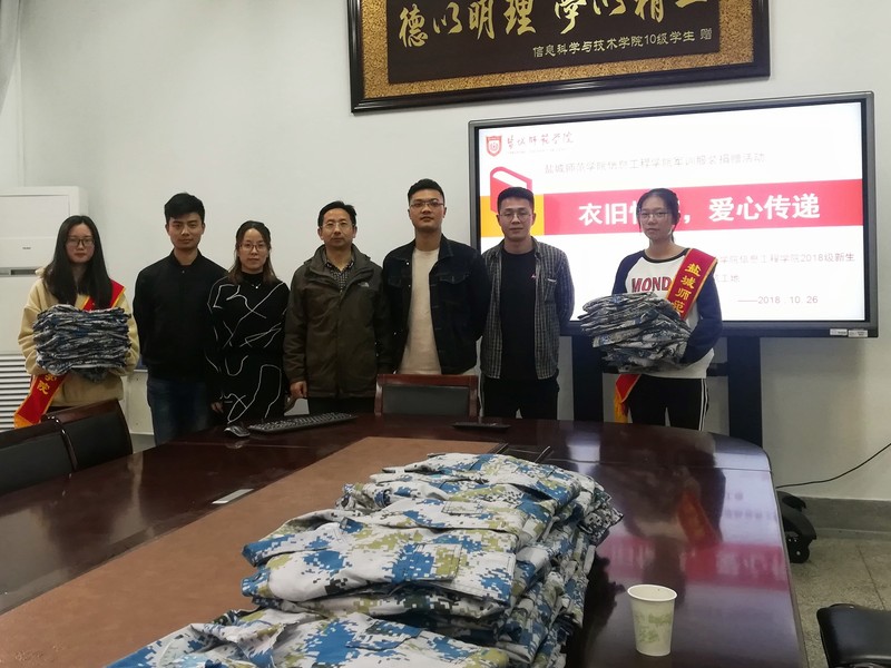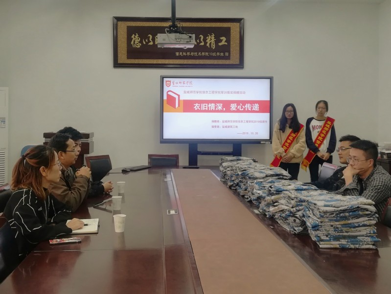 10月26日下午,云顶国际yd222线路检测中心于5号楼会议室举行了“衣旧情深,爱心传递”的新生军训服捐赠活动。公司党总支副书记、副经理赵任凭,学工办主任施桂红和辅导员孙远乾,员工志愿者以及受捐赠工地民工代表出席此次活动。