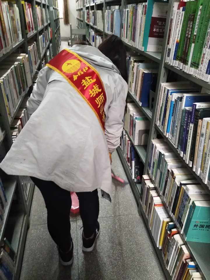 下午三点开始,志愿活动正式开始。同学们抵达了图书馆,并在图书馆管理员的带领下很快的熟悉了工作内容。志愿者们主要进行的是卫生清洁和书籍归位两方面的工作,你会看见社员们忙碌的身影。在短短的两个小时的活动中,大家都为了给同学们营造一个干净,舒适的阅读环境的目标努力着,坚守着自己的岗位。