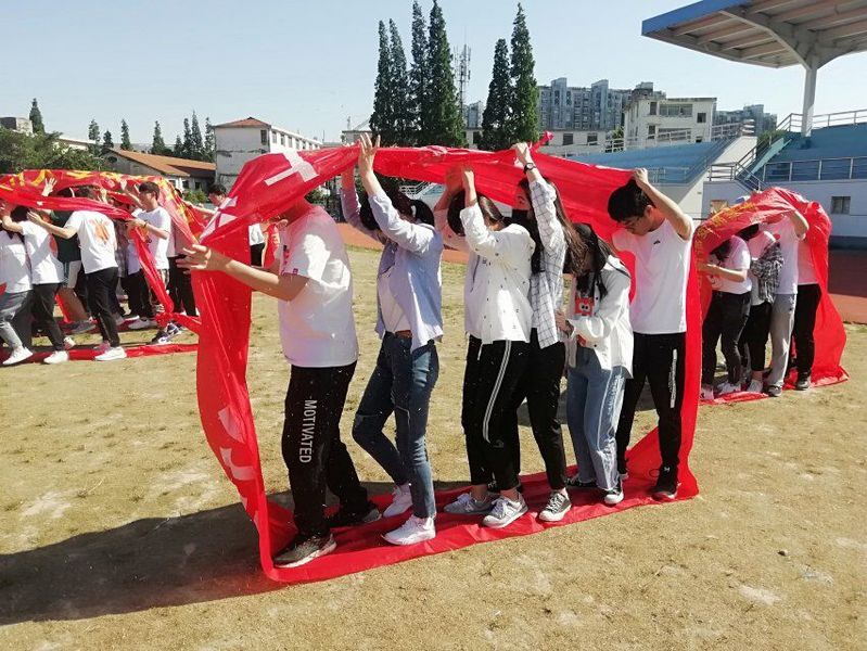 下午两点半,同学们准时到达,开展了设计队形、无敌风火轮、背夹气球等活动。现场活动氛围热烈,同学们参与积极性高,大家通力合作,互相信任,以完美的团体合作圆满完成了游戏任务。