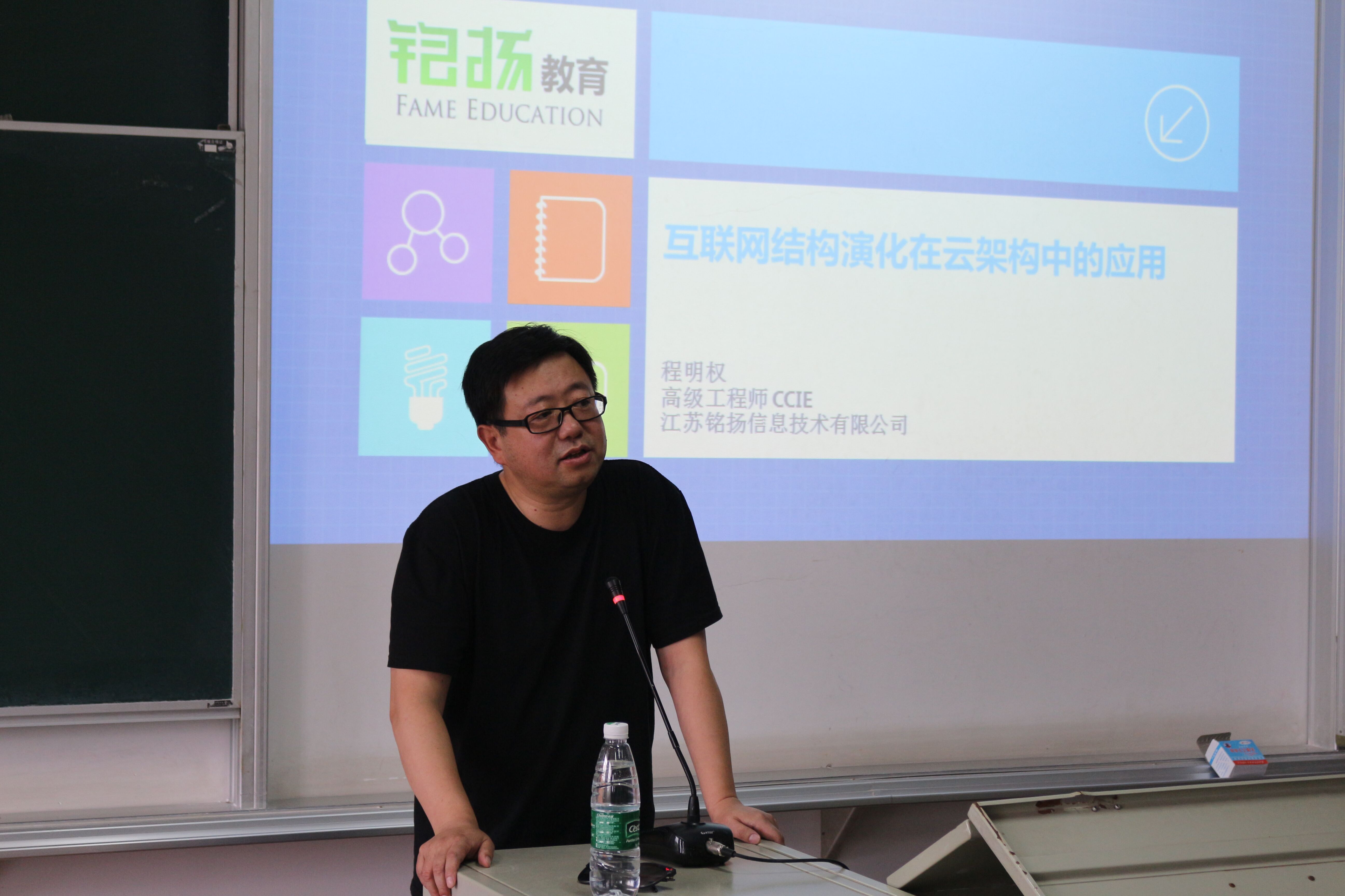6月26日下午,云顶国际yd222线路检测中心组织开展题为“互联网结构演化在云架构中的应用”的暑期社会实践专业夏令营专题讲座。讲座邀请江苏铭扬信息技术有限公司高级工程师程明权演讲。