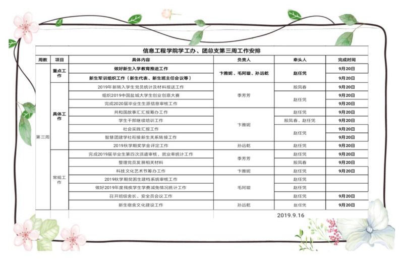 云顶国际yd222线路检测中心学工办,团总支第三周工作安排