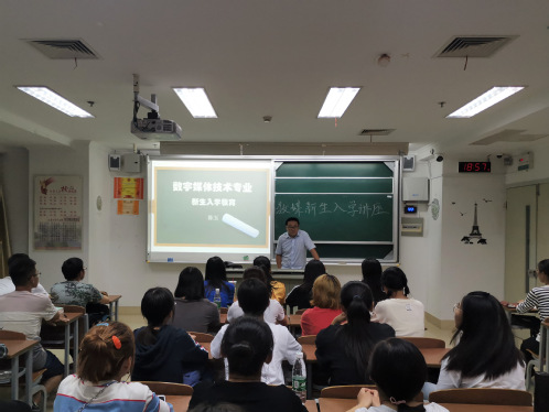 9月19日下午,数字媒体技术专业2019级新生入学教育讲座在教学主楼A506举行。本次讲座由数字媒体技术系主任陈玉主讲,班主任贾铮主持。