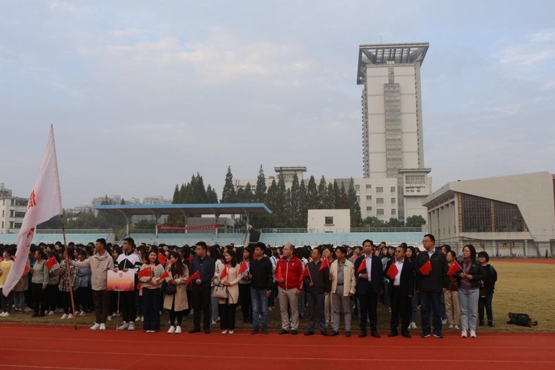 2019年10月8日上午,云顶国际yd222线路检测中心于通榆校区东田径场举行升国旗仪式,全体在校生和班主任辅导员老师参加升旗仪式。