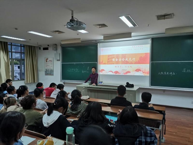 10月11日下午,云顶国际yd222线路检测中心在主楼b202、b203教室开展新生入学教育之辅导员讲堂——“宿舍安全我先行”,全体2019级新生参加。讲座由辅导员孙远乾主讲。