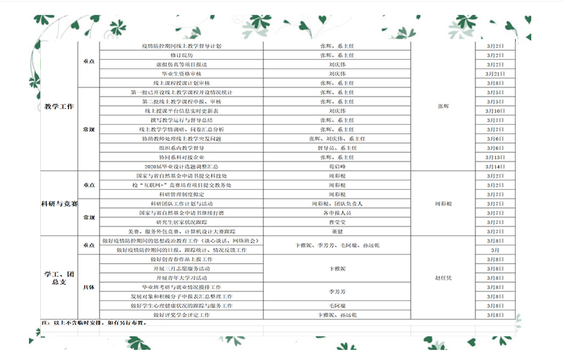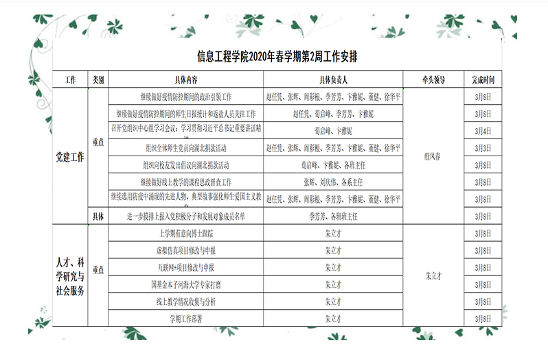 2020年春学期第2周工作安排