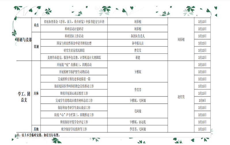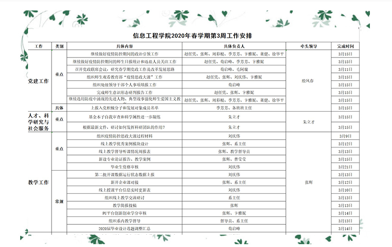 2020年春学期第3周工作安排