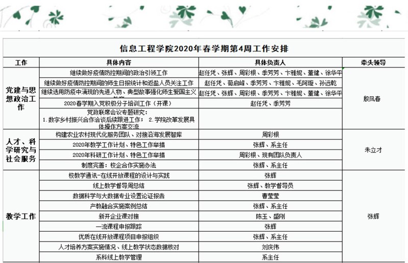 2020年春学期第4周工作安排