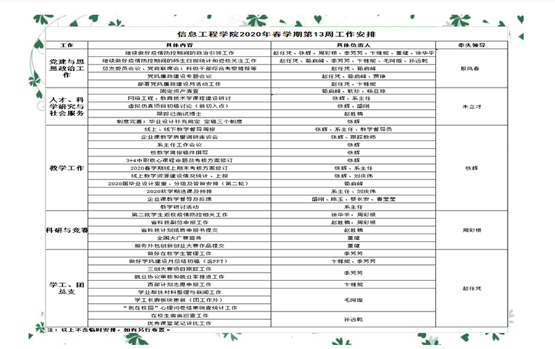 2020年春学期第13周工作安排