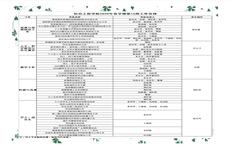 2020年春学期第16周工作安排