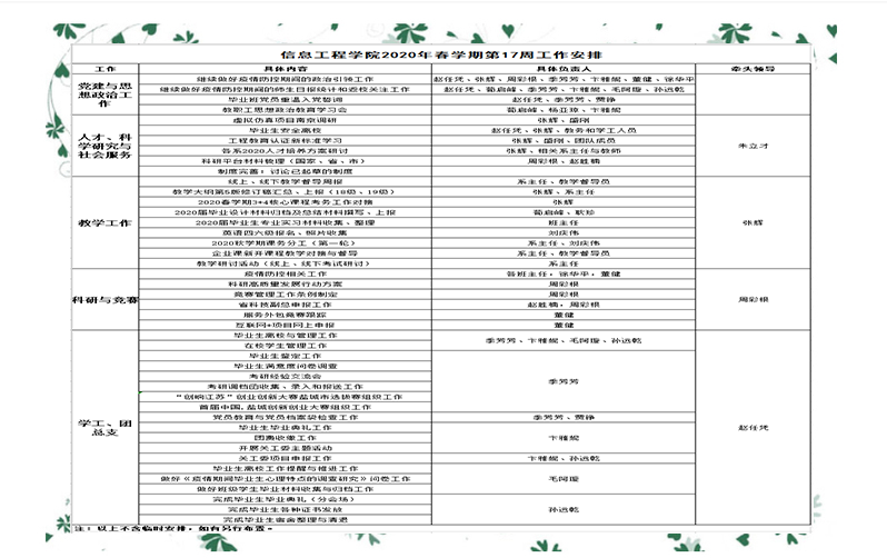 2020年春学期第17周工作安排