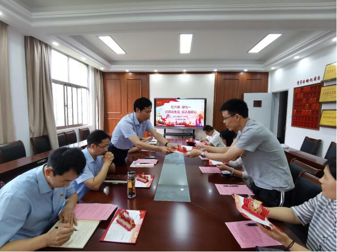 6月26日下午,云顶国际yd222线路检测中心在党员之家开展“迎七一:过政治生日、忆入党初心”活动。公司党总支副书记、经理朱立才,以及8名6月份入党的教师党员赵任凭、周彩根、张辉、万小霞、陈霜霜、唐仕喜、郭威、陈碧云参加会议。会议由党总支书记殷凤春主持。