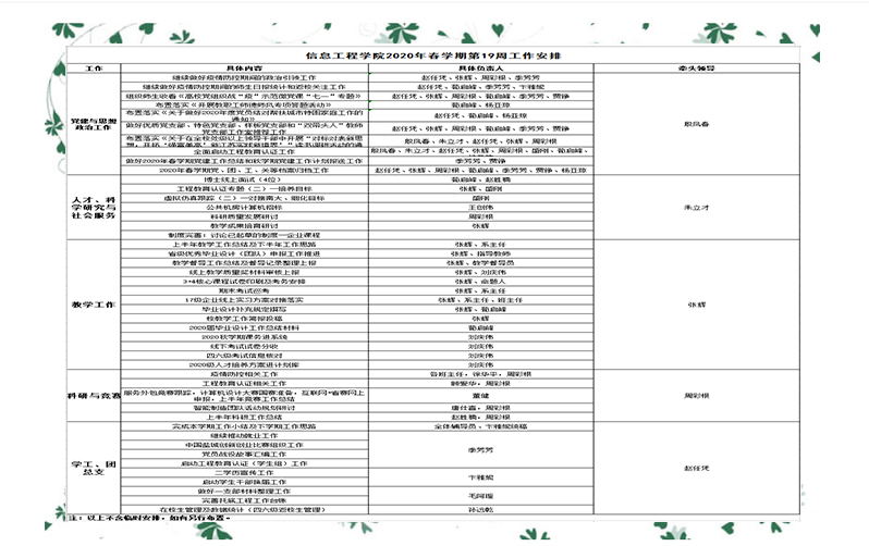 2020年春学期第19周工作安排