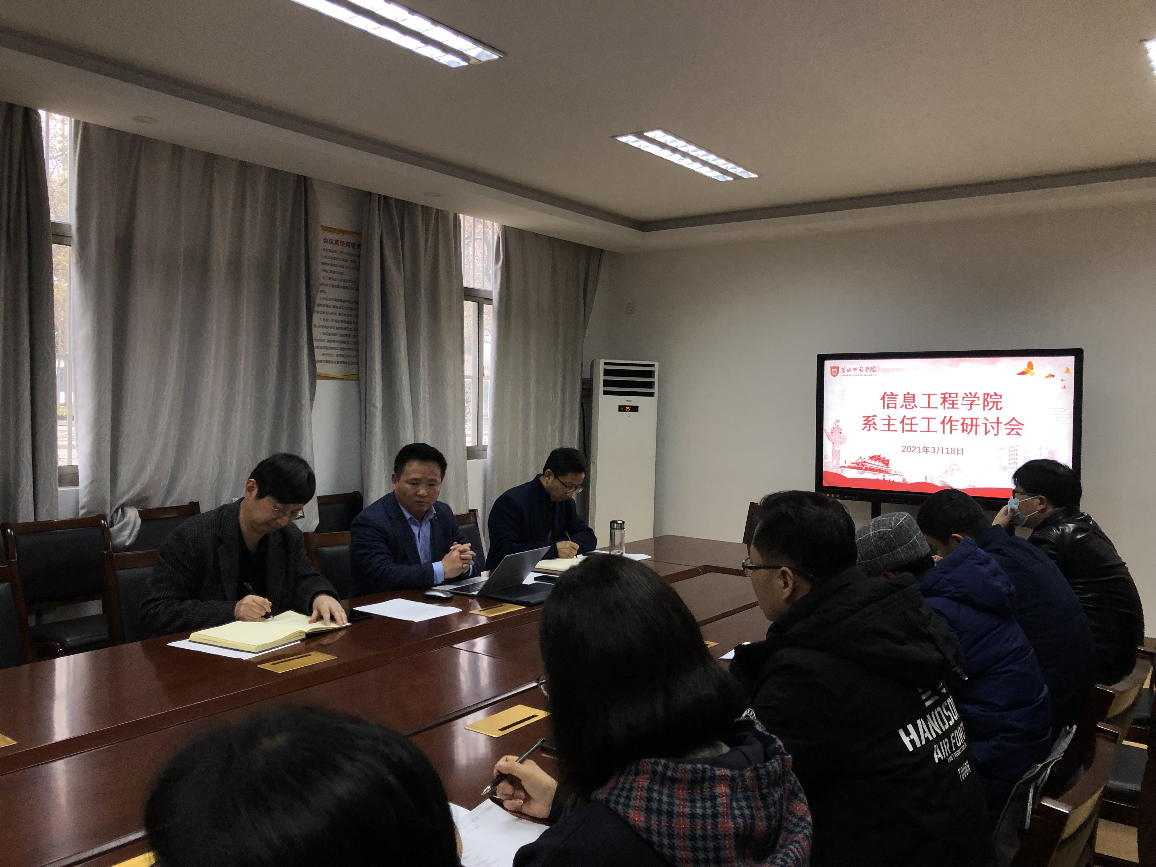 3月18日下午,云顶国际yd222线路检测中心在4号楼103会议室召开春学期系主任工作会议。党委书记赵任凭,副经理周彩根,党委委员、办公室主任徐贵伍,各教学系主任以及相关工作人员参加会议。会议由党委副书记、经理朱立才主持。