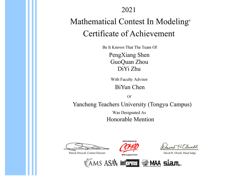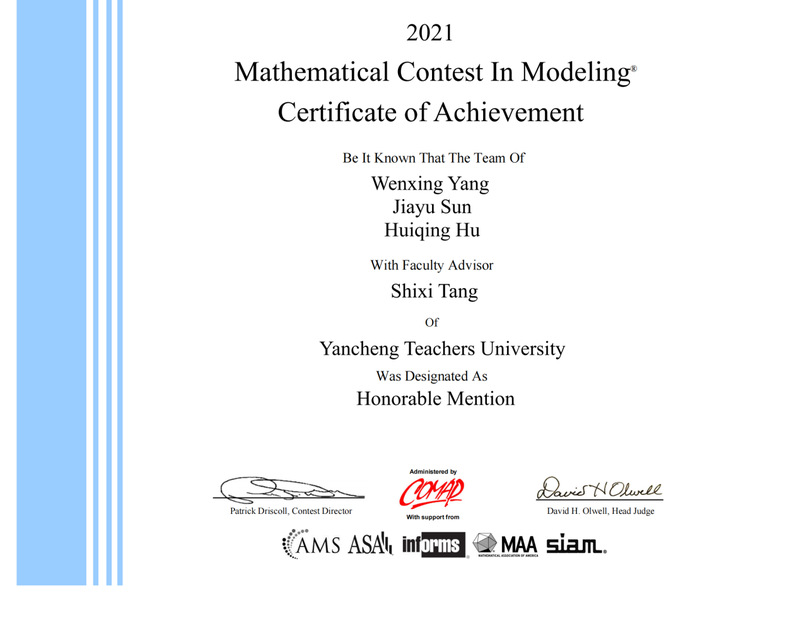近日,2021年美国老员工数学建模竞赛(MCM/ICM)成绩已在其官网公布,在疫情防控的严峻形势下,在国际一等奖(M奖)和国际二等奖(H奖)获奖比例减半的新规则下,公司云顶国际yd222线路检测中心学子迎难而上,共4支参赛队伍喜获国际二等奖(Honorable Mention)。