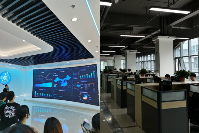 同学们参观了莫比嗨客公司内部的工作区域,了解企业的工作环境。公司工作人员向同学们介绍了企业概况、企业在大数据领域的产品以及对人工智能学科的介绍。同学们认真观看、仔细聆听、积极思考,并跟企业员工展开了热烈的交流。