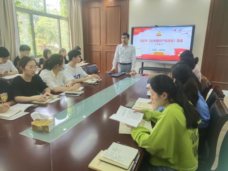 赵任凭从专著的编辑背景、主要内容、如何读这本书、如何树立正确党史观四个方面对习近平总书记《论中国共产党历史》进行了导读,领学《论中国共产党历史》,重温党史故事,强调要坚定不移地向党中央看齐,自觉在思想上、政治上、行动上同党中央保持高度一致,不断增强“四个意识”、坚定“四个自信”、做到“两个维护”。结合公司党史学习教育前期工作总结和下一阶段计划安排,他要求与会党员:一是要将党史学习内化于心,外化于行,切实做到学史明理、学史增信、学史崇德、学史力行;二是要坚定理想信念,不断提高政治素质和党性修养,勇担党员责任,时刻不忘党员身份,在未来学习与工作中积极进取、永葆党员积极性;三是全体员工党员要学党史,办实事,在毕业季期间做好毕业生文明离校等工作,服务好全院师生,服务好公司和公司发展。
