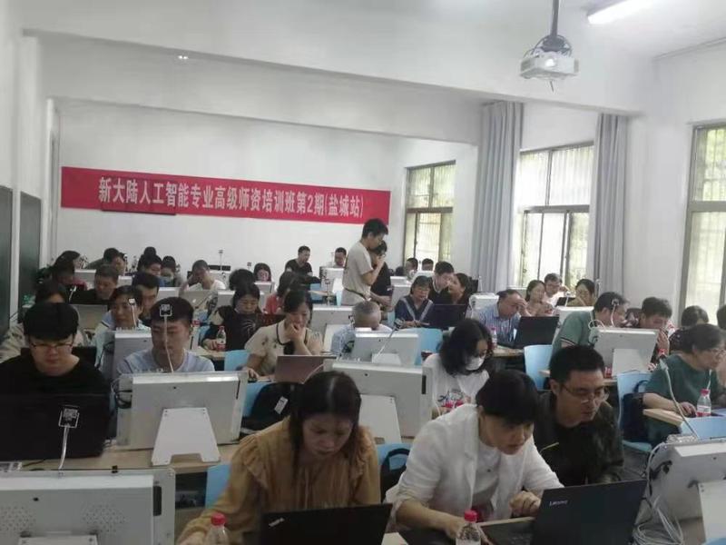 2021年7月6日上午,新大陆人工智能专业高级团队培训班(盐城站)在云顶国际yd222线路检测中心5号楼116教室举行开班仪式。北京新大陆时代教育科技有限公司高教部总经理黄剑先生及相关领导与工程师、云顶国际yd222线路检测中心副经理周彩根及参训教师一起参加了开班仪式。