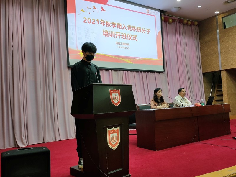开班仪式在庄重而严肃的国歌中拉开序幕,季芳芳宣读本期入党积极分子培训计划和纪律要求;数媒205班王成成同学作为入党积极分子代表发言。