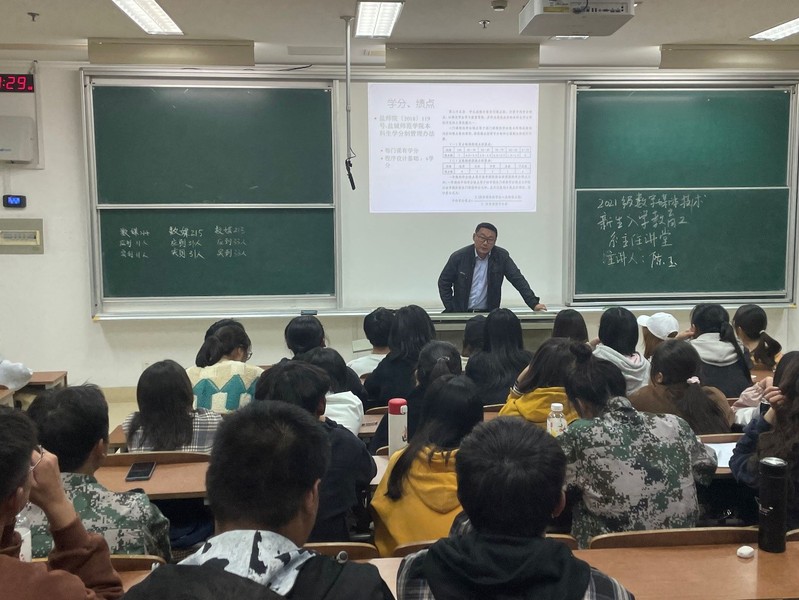 11月2日晚,数字媒体技术专业2021级新生入学教育讲座在5主楼B211举行。系主任陈玉主讲,2021级数字媒体技术专业全体新生参与。