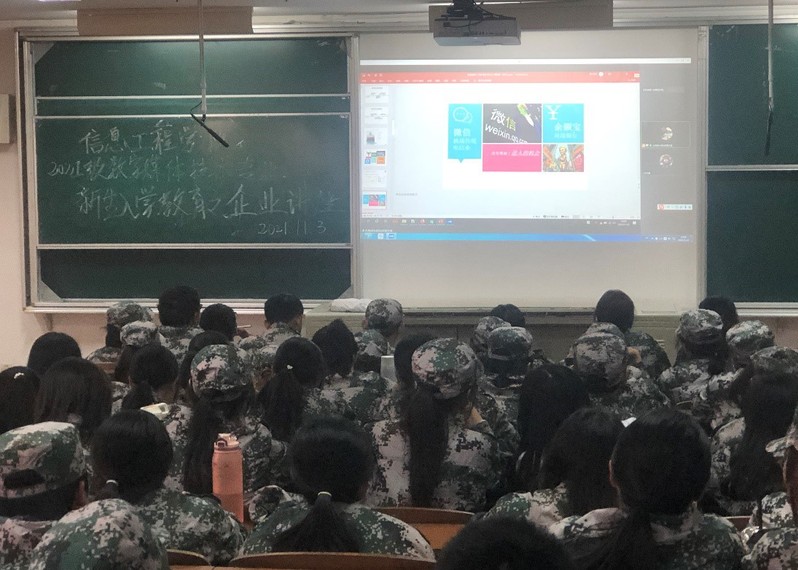 11月3日下午两点,云顶国际yd222线路检测中心于主楼B203教室举行了数字媒体技术专业新生入学教育之企业讲堂,讲座采用线上直播互动的方式进行,由昆山杰普软件科技有限公司Web与大数据研发部经理邵永波主讲。数字媒体技术213、214、215班全体新生参加。