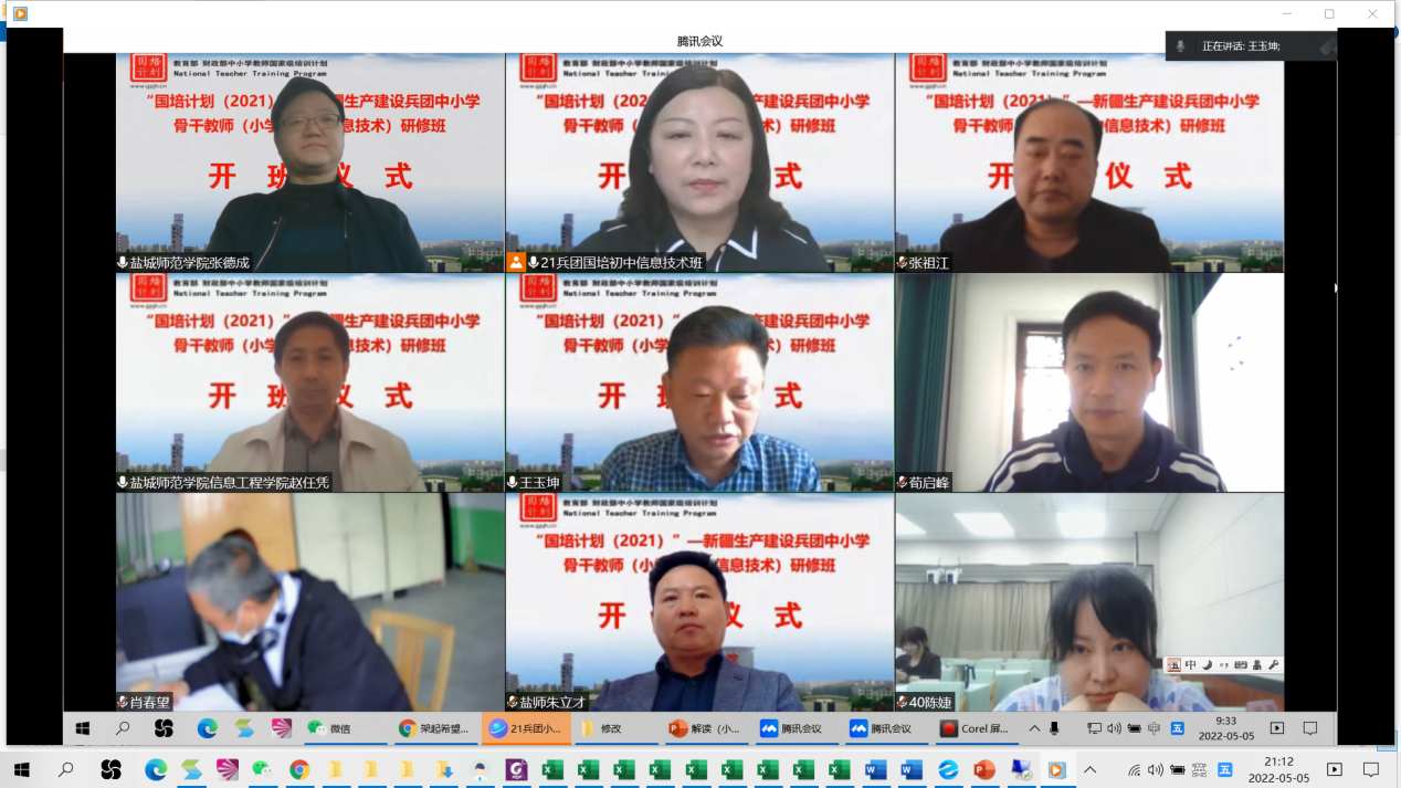 因疫情影响,二次紧急叫停的“国培项目(2021)”--新疆生产建设兵团中小学骨干教师培训项目(小学、初中信息技术)培训班,于5月5日上午9时30分在腾讯会议正式开班。继续教育公司党委书记王玉坤,云顶国际yd222线路检测中心党委书记赵任凭、云顶国际yd222线路检测中心经理朱立才出席开班仪式。