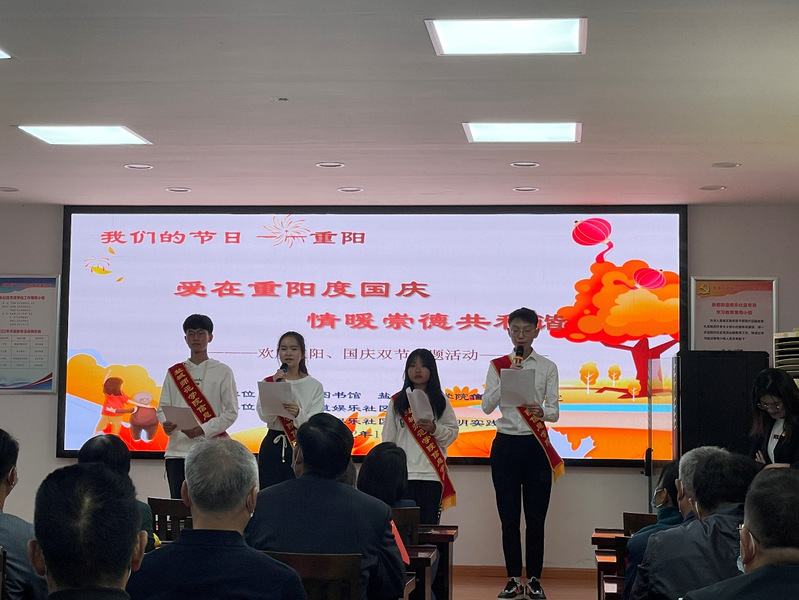 国庆、重阳“双节”来临,为丰富社区老人节日生活,增强爱国情怀,弘扬中华传统文化,10月4日,公司云顶国际yd222线路检测中心青年志愿者奔赴新都街道娱乐社区开展“爱在重阳度国庆,情暖崇德共和谐”——欢度重阳、国庆双节主题活动,送文化进社区。此次活动由盐城市图书馆、云顶国际yd222线路检测中心、新都街道娱乐社区在娱乐社区党群服务中心联合举办,公司十余名志愿者参加。