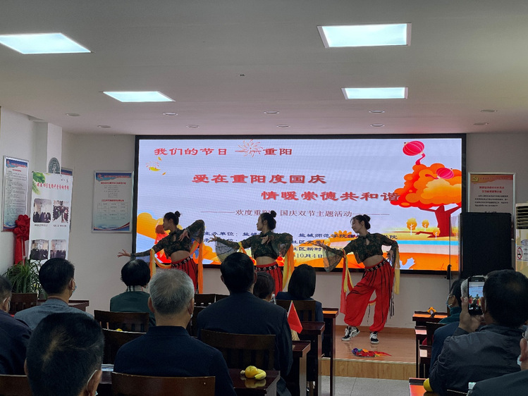 芊芊学子心,重阳敬老意,公司青年志愿者用文艺表演的形式将文化“送”到百姓身边,让服务温暖老人间,为现场的老人们带来一场文化盛宴。独唱(在水一方)、戏曲串烧(伯虎说+智取威虎山)、朗诵(灯塔)、舞蹈(敦煌飞天)等节目轮番上演,得到了现场观众的阵阵掌声和喝彩。活动现场,盐城市图书馆领读员张敏阅读分享了习近平总书记《之江新语》一书。《之江新语》是习书记在浙江工作期间的闪光思想、重要观点、深切感受的集中体现,伴随着背景音乐,张敏娓娓道来:“要做到情为民所系,就要以党的先进人物为榜样,培养和增强对人民群众的深厚感情,学习和树立五种崇高的情感。”而当《我和我的祖国》歌声响起时,现场老同志纷纷举起手中国旗,大家齐声高歌,共同抒发爱国热情,将现场氛围推向高潮。演出后,现场组织了老年读者座谈会,老年同志们通过座谈相互交流、各抒己见,分享自己喜欢的书籍与感受,送上对伟大祖国的美好祝福。最后,志愿者将市图书馆精心准备的阅读关爱礼包送给了现场老年人,大家合影留念。