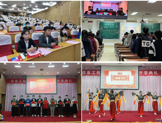 文娱表演将典礼推向高潮,《歌曲串烧》、配音秀《盐师指南》、朗诵《因你而精彩》、舞蹈《敦煌飞天》、《给我一个吻》精彩呈现,展示信工学子的朝气与活力。