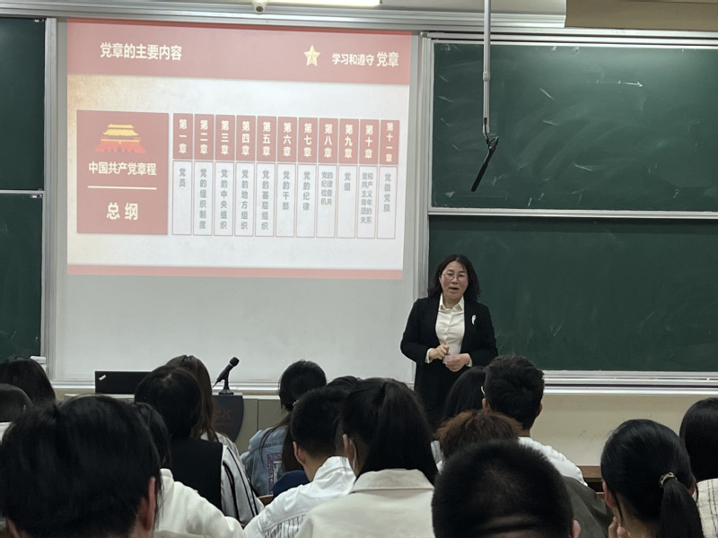 党课上,郭晓俐紧扣“认真学习党章,严格遵守党章”关键词着重从党章的概述、党章的发展历程、党章的总纲、党章的条文和学习和遵守党章等五个方面《中国共产党章程》(2022年)进行深入浅出的解读。党课内容丰富,结合实际案例,列举大量数据,提问互动,课堂氛围热烈。