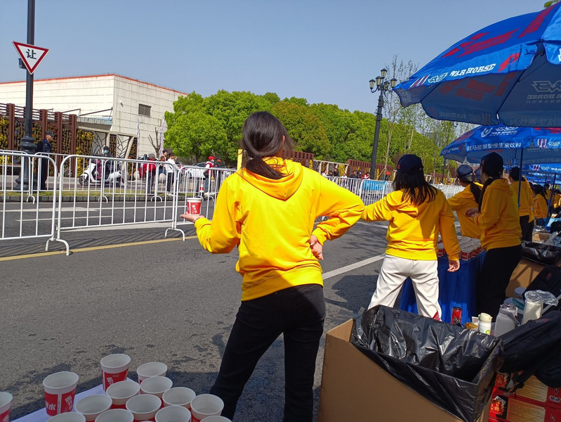 公司青年志愿者负责全马20km,22km及24km物资补给站服务工作。4月16日凌晨4点,公司志愿者们在通榆校区西门集合,按照事先的分工到达指定岗位,志愿者们迅速投入到了紧张的赛前准备工作中,摆放桌椅、撑起凉棚、准备物资等。伴随七点半比赛枪声响起,志愿者们激情澎湃地等待参赛选手的到来,递水、递冰块、递能量物资、加油呐喊,成为赛道上一抹亮丽的风景线。直至中午近12点,公司青年志愿者完成服务任务,撤离岗位,安全返校。志愿服务工作持续近6个小时,全体志愿者们不怕苦不怕累,坚守工作岗位,尽全力做好服务保障,发扬志愿精神,展现青年风采。