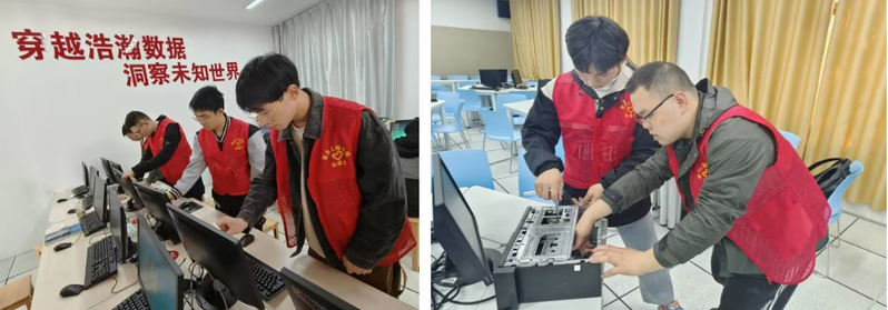 公司机房设备多、维保难度大、维护任务重。公司充分发挥员工学科专业优势,组织劳动实践专项活动,对13个机房的硬件设备进行清洁、故障维修以及软件升级维护,切实保障机房教学的稳定运行和正常秩序。活动中,同学们掌握不同设备的保洁清理、设备硬件结构和系统安全保护方面的技能,提升了专业理论的实践认知,展现了新时代好青年的责任担当和青春风采。