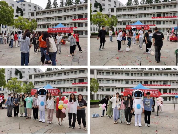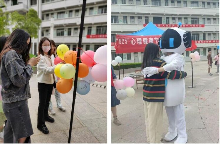 活动分为“和烦恼说拜拜”与“跟拥抱说嗨嗨”两个部分。参与活动的员工把烦恼和焦虑写在气球上,通过自己喜欢的方式踩碎气球。活动场上响起了一阵阵噼里啪啦的爆破声。随着气球被逐个踩破,同学们的压力和负能量也随之消散,完成了一次减压的心灵旅程。活动中,可爱的机器人玩偶给路过的同学送上了温暖的抱抱,以无声的拥抱传递温暖、传递快乐,同学们的脸上洋溢着幸福的笑容。