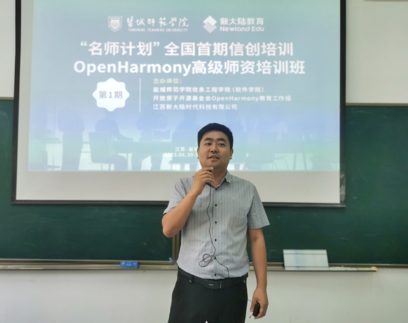 7月1日上午,“名师计划”全国首期信创培训—OpenHarmony高级团队培训班在公司公司举办。公司党委常委、副董事长汤克明,新大陆教育集团江苏高教负责人孙虎,公司党委书记郭晓俐,副经理周彩根以及培训班全体学员60余人出席开班仪式,开班仪式由公司党委副书记、经理朱立才主持。