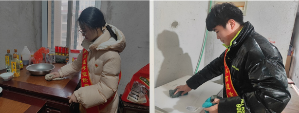 活动中,在益丰社区新时代文明实践站负责人带领下,大家进入社区老人家中为老人们整理内务、擦拭桌椅、打扫地面等,用绵薄之力带给老人们快乐与温暖。志愿者们还与老人们聊天谈心,倾听他们讲述年轻时候的故事以及难忘的经历。老党员丁爷爷表示,今天很高兴与同学们交流沟通,同时也希望同学们好好学习知识、掌握专业本领,担当起历史责任与时代使命,为建设中国式现代化贡献力量。