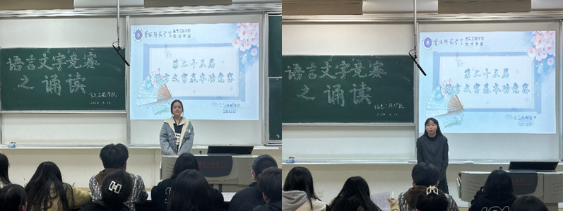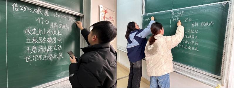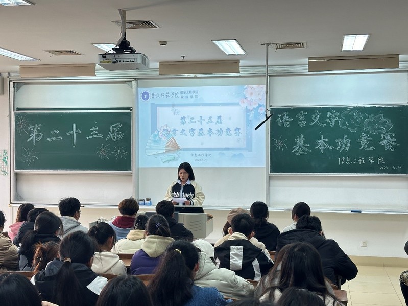 比赛共分为毛笔、粉笔、钢笔、正字、听写、诵读六个部分,多角度对同学们的语言文字基本功进行全面考查。赛场上,选手们专心致志、屏息凝神,展现了信工院学子丰富的汉字素养和良好的语言功底。诵读比赛以“诵中华经典,品盛世之名”为主题,参赛选手们用抑扬顿挫的节奏、铿锵有力的语调以及轻柔舒缓的旋律,展现出中华经典的多元韵味。