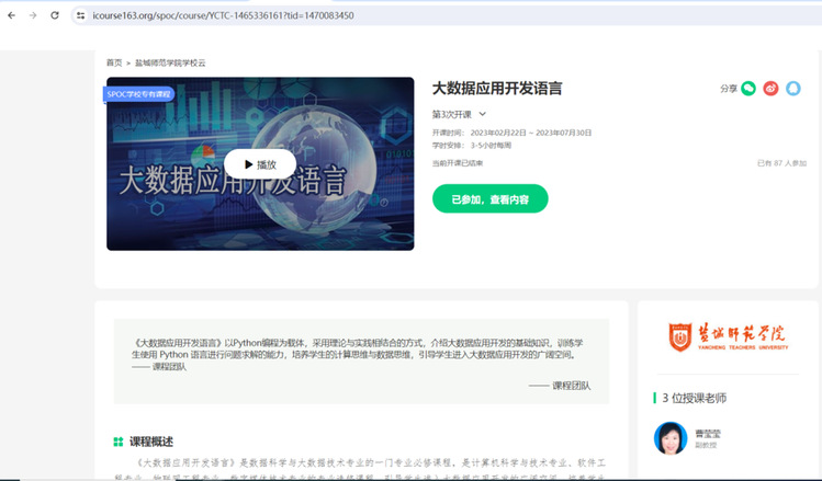 在数字化、智能化时代,大数据已经成为推动社会发展的重要引擎。曹莹莹老师领衔的《大数据应用开发语言》课程是数据科学与大数据技术专业的必修课,也是诸多专业的热门选修课,在校内引起广泛关注。如何引领员工快速掌握大数据开发语言,解决社会实际应用问题是亟待解决的课题。