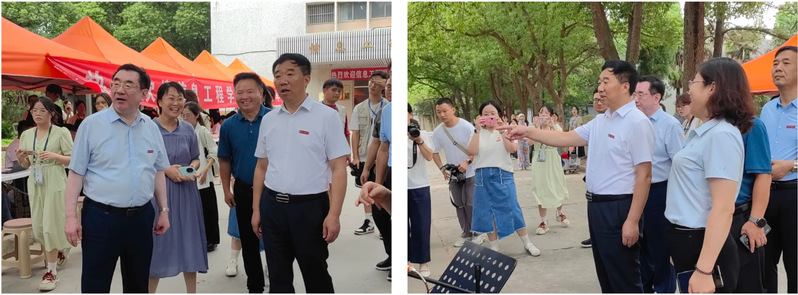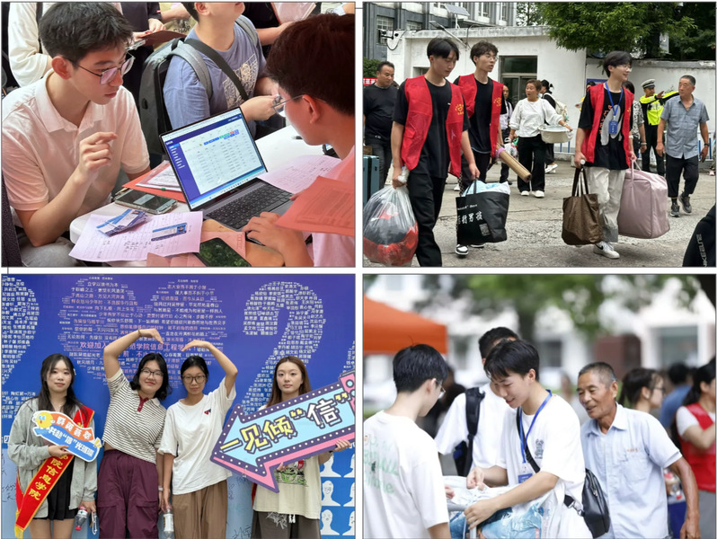 校院两级领导班子深入迎新现场了解新生报到情况及各项工作进程。报到现场秩序井然,气氛温暖热烈,各部门分工合作,各司其职,展现了信工学子“以心迎新”的人文互助之情。