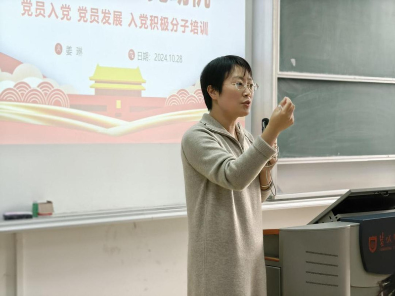 姜琳对入党积极分子们提出三点希望:一是要坚定理想信念,将党的宗旨熟记于心;二是要凝聚奉献意识,在为同学们服务的实践中锤炼党性修养;三是发挥先锋模范作用,敢为人先,以身作则。
