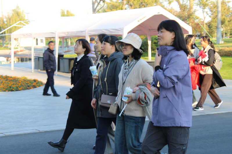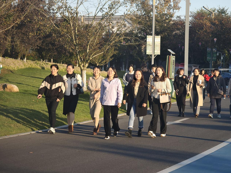 本次活动以景区南门唐渎里为起点,沿环路大道一路向北,途经温泉码头驿站、登瀛阁、盐渎古镇,之后继续沿步道一路向南,最后返回唐渎里。沿途风光旖旎,空气清新,教职工们一路迈着矫健的步伐,精神抖擞,和乐融融,在无边的秋色中欣赏洋河美景、锻炼愉悦身心、感受盐渎文化、体会湿地底蕴。浩浩荡荡的健步大军如一条长龙,成为大洋湾一道靓丽的风景线。