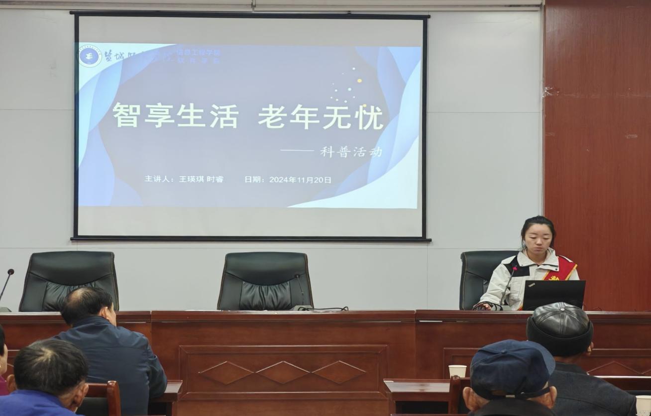 本次活动分三个环节:沂蒙精神宣讲、助老反诈宣传和智能手环健康体验。在沂蒙精神宣讲环节,宣讲同学以“传承红色基因,弘扬沂蒙精神”为题,讲述发生在沂蒙革命老区的故事,带领大家深刻感悟“党群同心、军民情深、水乳交融、生死与共”的沂蒙精神内涵。在助老反诈宣传环节,宣讲同学围绕“智享生活,老年无忧”展开反诈科普宣讲,结合实际案例,深入剖析诈骗手法,传授实用防诈技巧,使老年人学会识别并防范网络诈骗。在智能手环健康体验环节,宣讲同学仔细讲解智能手环的血氧检测、心率检测、智能提醒等各种健康监测功能和使用方法,带着大家现场体检,感受科技带来的生活便利,自信地拥抱智慧生活。