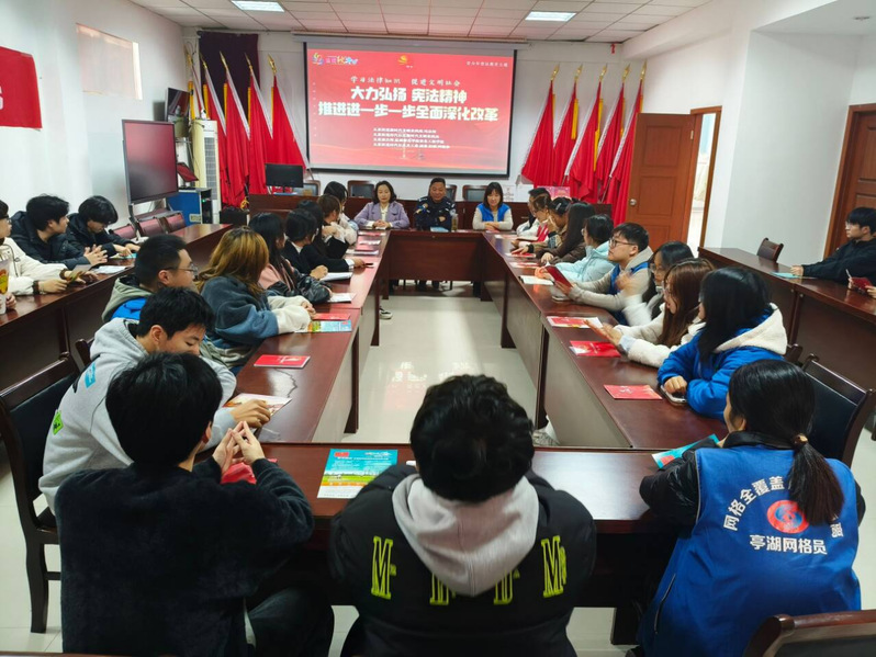 活动中,公司老员工志愿者与印汽社区民警、志愿者、网格员一起,采用现场授课、互动问答、知识抢答等多种方式,生动形象地向社区居民及青少年宣传宪法知识和法治理念。在现场宣讲环节,宣讲人围绕宪法知识和法治理念,讲解网络安全、反校园暴力、未成年人保护等热点议题,为大家带来了一场法治知识的盛宴。互动问答与知识抢答环节,大家积极参与,竞相展示自己对宪法知识的掌握,现场气氛热烈而有序。活动现场还精心准备了宪法知识、宪法时事资讯图片展,进一步增进了社区居民及青少年对宪法时事热点的了解。
