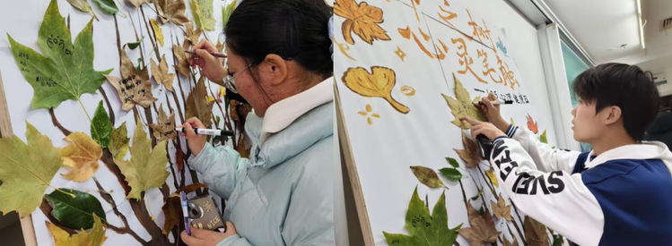 活动现场,同学们以叶子为媒介,展开了一场关于生命意义与美好愿景的探索。每一片被精心创作的叶子,都是独一无二的心灵表达,它们或以文字承载对于未来的美好愿景,或以鲜艳的色彩渲染出当下的心情。文字与画笔交织,不仅使得“生命之树”重新焕发出蓬勃生机,也让员工们的内心世界得以展现,彼此间的心灵因此更加贴近。这棵树不仅记录了员工们当下的思考与情感,更成为了时间的长河中,一抹温暖而持久的记忆,提醒着每一个人:在这个广阔的世界里,每个人的生命故事都是独特且宝贵的。