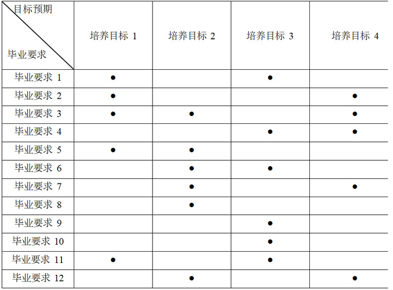 注:各专业在毕业要求与培养目标相对应处用“●”标记