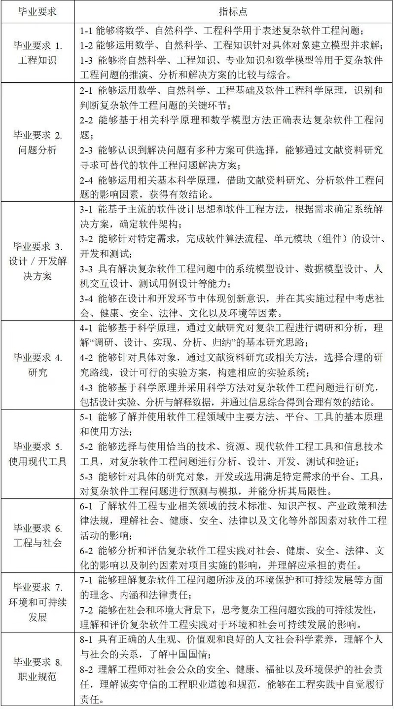 毕业要求1.工程知识:能够将数学、自然科学、工程基础和专业知识用于解决复杂软件工程问题。
