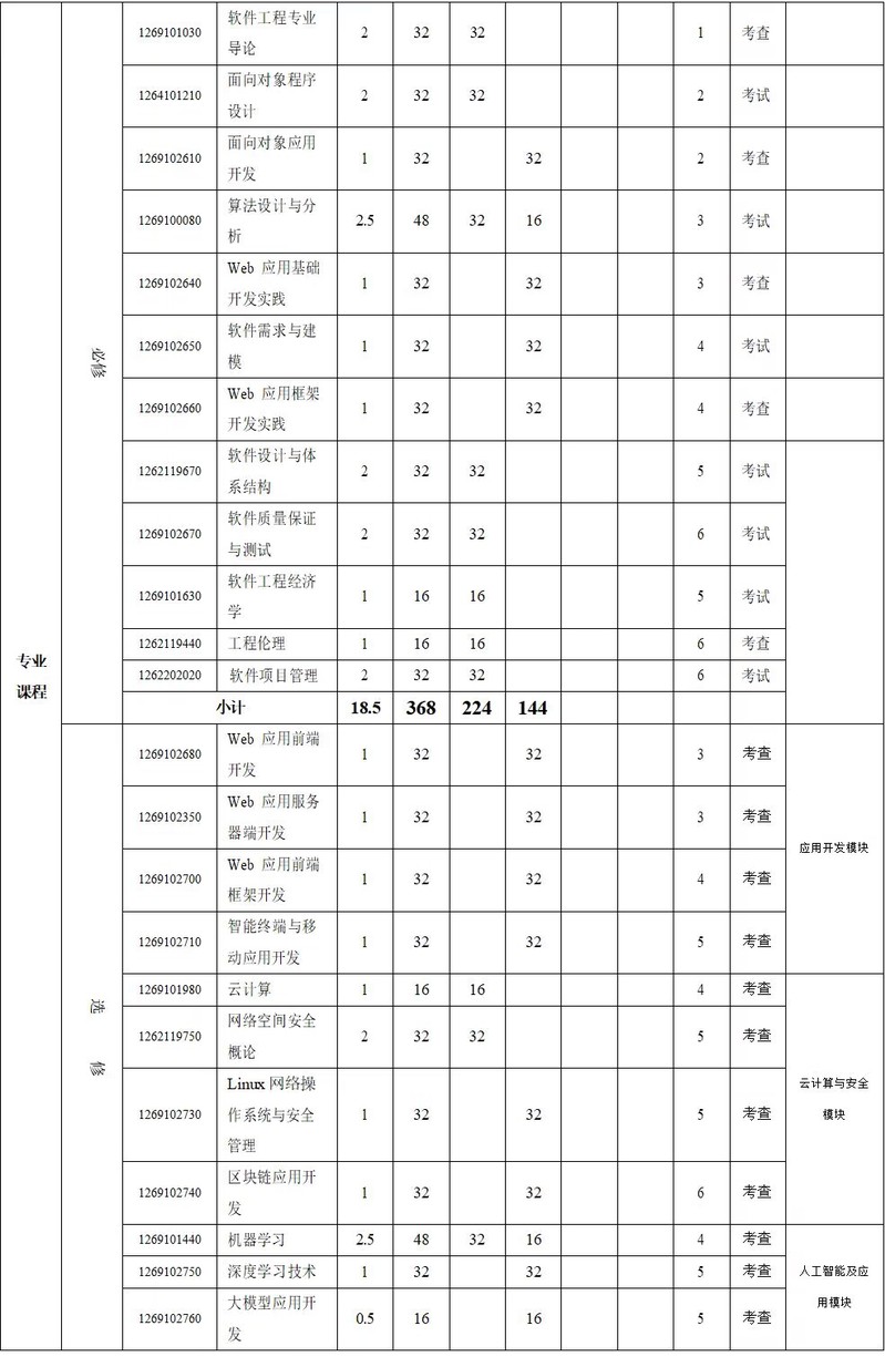 大数据分析与处理、智能终端与移动应用开发、企业级开发框架技术、企业级软件开发方向实训等课程。