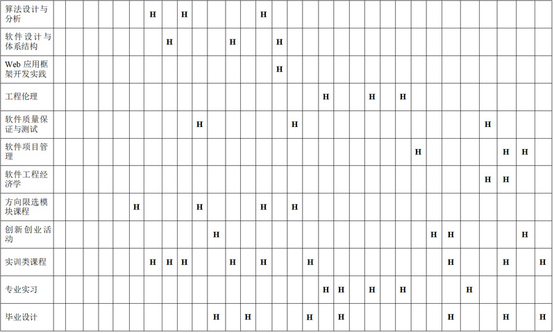 软件工程专业毕业要求与课程及教学活动关联矩阵