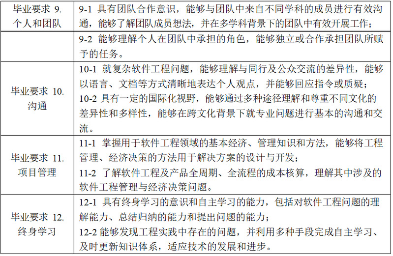 毕业要求10. 沟通:能够就复杂软件工程问题与业界同行及社会公众进行有效沟通和交流,包括撰写报告和设计文稿、陈述发言、清晰表达或回应指令。并具备一定的国际视野,能够在跨文化背景下进行沟通和交流。
